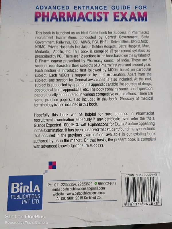 Birla Pharmacist Exam 1000 MCQ
